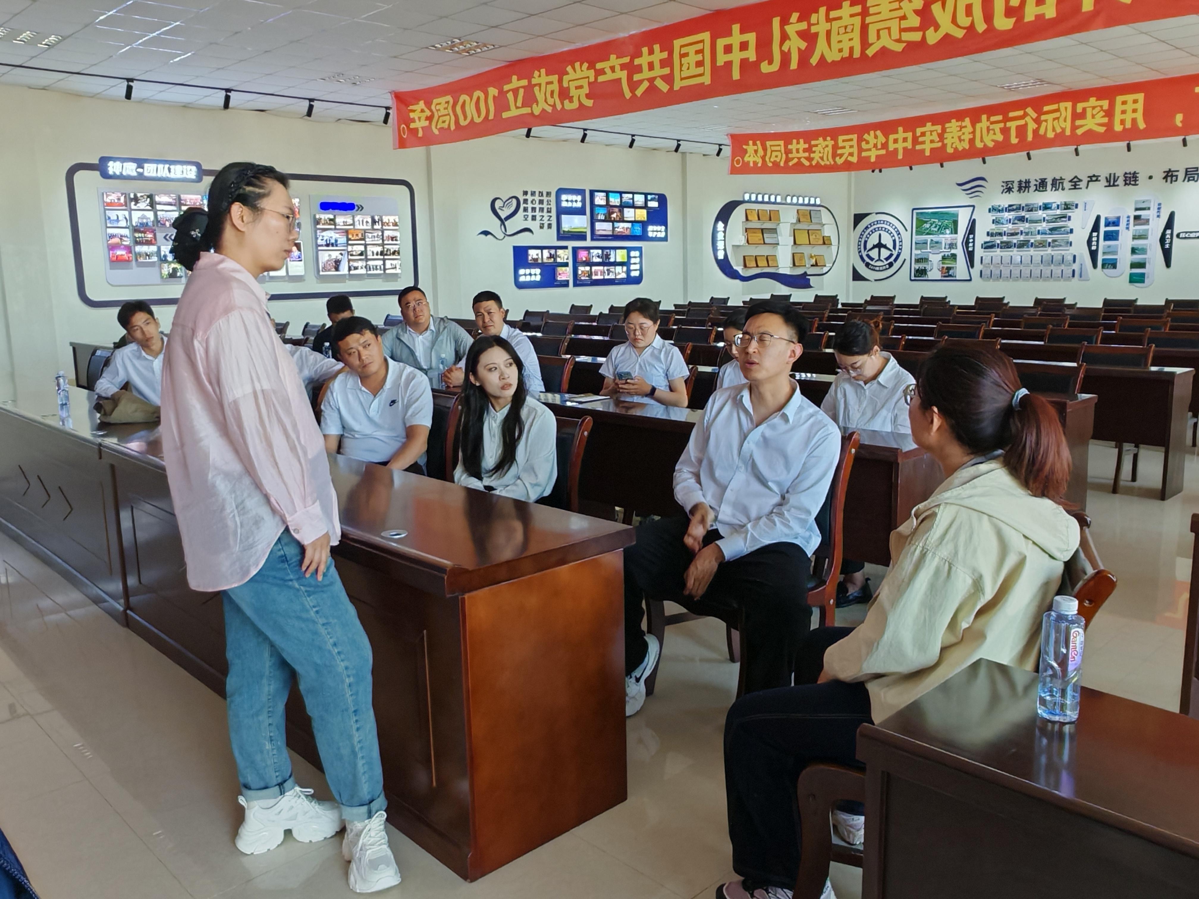 隨后,學(xué)員們參觀了企業(yè)文化墻并觀看宣傳片,進(jìn)一步了解企業(yè)發(fā)展歷程。在座談交流環(huán)節(jié),雙方就通遼市當(dāng)前低空經(jīng)濟(jì)發(fā)展現(xiàn)狀與未來規(guī)劃進(jìn)行了深入探討。