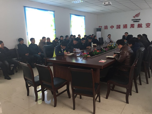 通遼市神鷹通用航空有限公司全體人員在飛機(jī)制造廠小會議室召開新年動員大會
